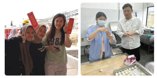 元宵佳節(jié),莫羅瓦利產(chǎn)業(yè)基地食堂門前張燈結(jié)彩,160張燈謎紙條整齊劃一地懸掛在燈籠下面。來自基地各個部門的中印尼員工互相探討燈謎謎底。微風(fēng)吹來,謎面隨風(fēng)起舞,兩國員工穿梭其間,流連忘返。猜謎結(jié)束后,大家紛紛入座食堂,共享元宵。