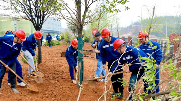 銅仁(上市主體)產(chǎn)業(yè)基地工會開展了植樹節(jié)相關(guān)活動,工會領(lǐng)導(dǎo)班子號召廣大員工參與到愛護(hù)園區(qū)環(huán)境的行動中,來自原料廠區(qū)、材料廠區(qū)、環(huán)保廠區(qū)、職能部門的員工代表參加了植樹活動,為園區(qū)增添新綠。